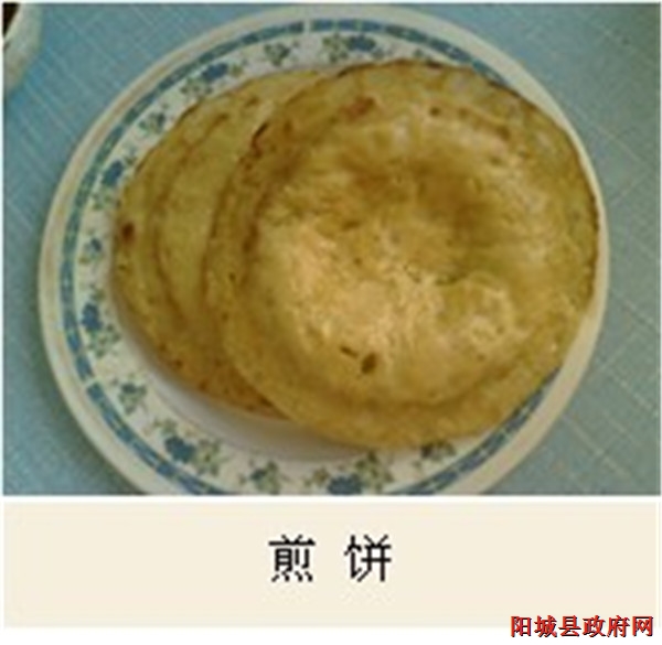 清晨,走在阳城的大街上,只见小吃店前,人头攒动,一个个顾客用盘子端着金黄色的圆饼状食物吃得津津有味,这种食物就是阳城的传统名牌小吃——小米煎饼。其气香味醇,松软适口,配以当地的小米粥稀饭或杂格,味则更佳;又因营养价值丰富,成为当地人早餐的首选之食。