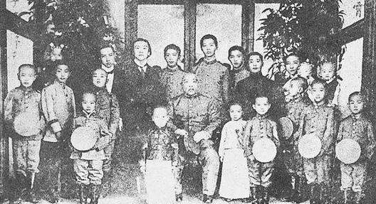 袁世凯有一妻九妾,共生了17个儿子、15个女儿,儿孙总和达79人。